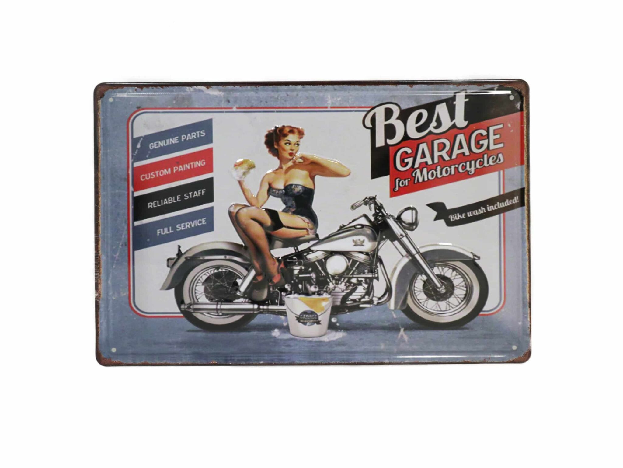 29. April 2022Blechschild Wandschild Pin Up Motorrad Garage 25 x 20 cm