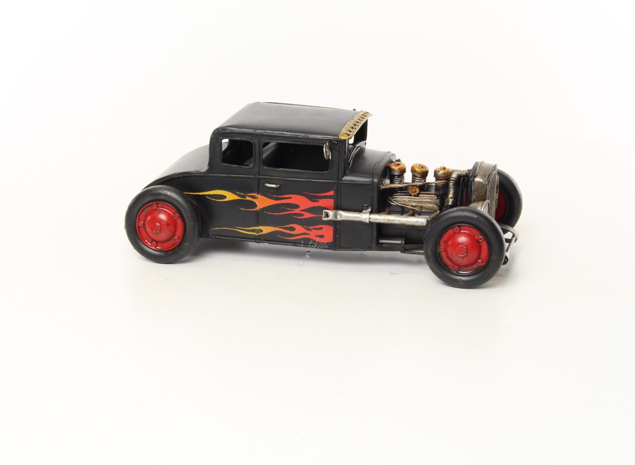 28. September 2022Hot Rod Blechmodell 32cm – Atemberaubendes Oldtimer Blechauto mit Flammen-Design 🔥